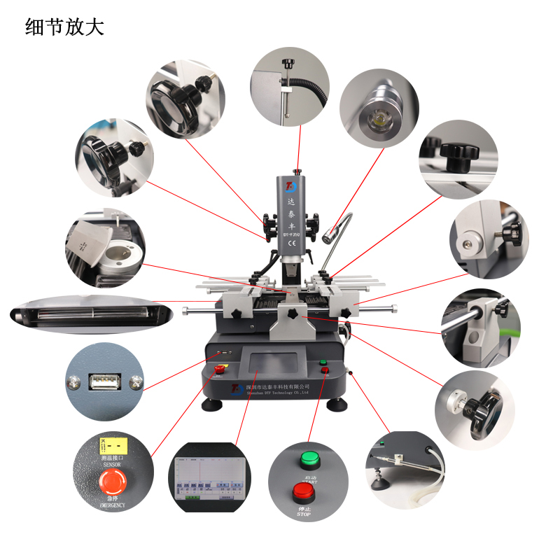 - 上部加熱功率: 1200W(加強版本,可適用于大芯片、大散熱類產(chǎn)品),風(fēng)量可以調(diào)節(jié),最大風(fēng)量25m/s,使用功率由升溫速度與環(huán)境溫度有關(guān),適配200W-1200W使用要求